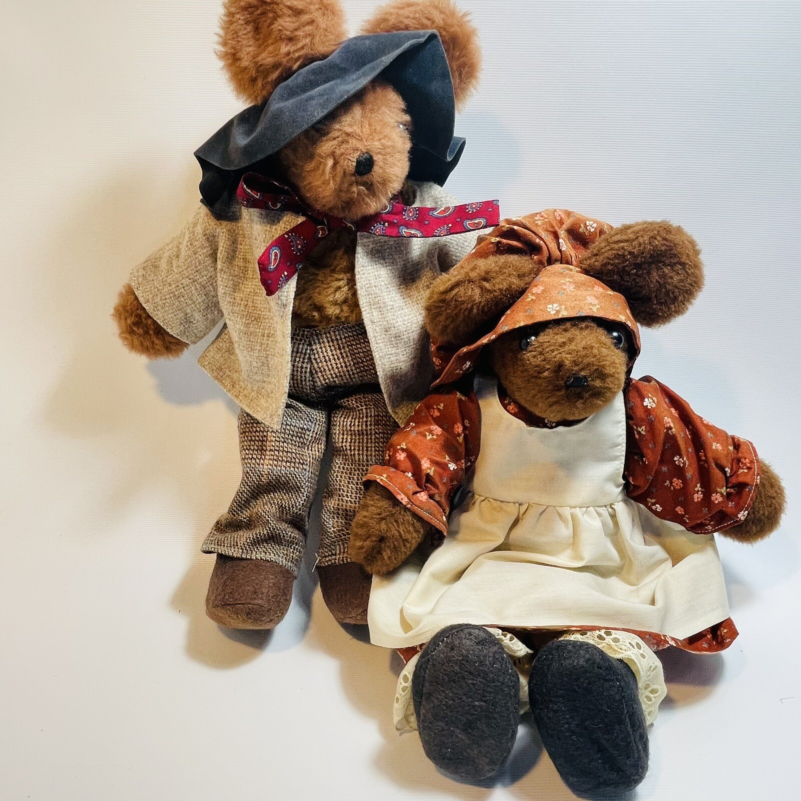 2 Hand Sewn Handmade Brown Country Teddy Bears 13 Rare One Of A Kind Set Unique Ebay